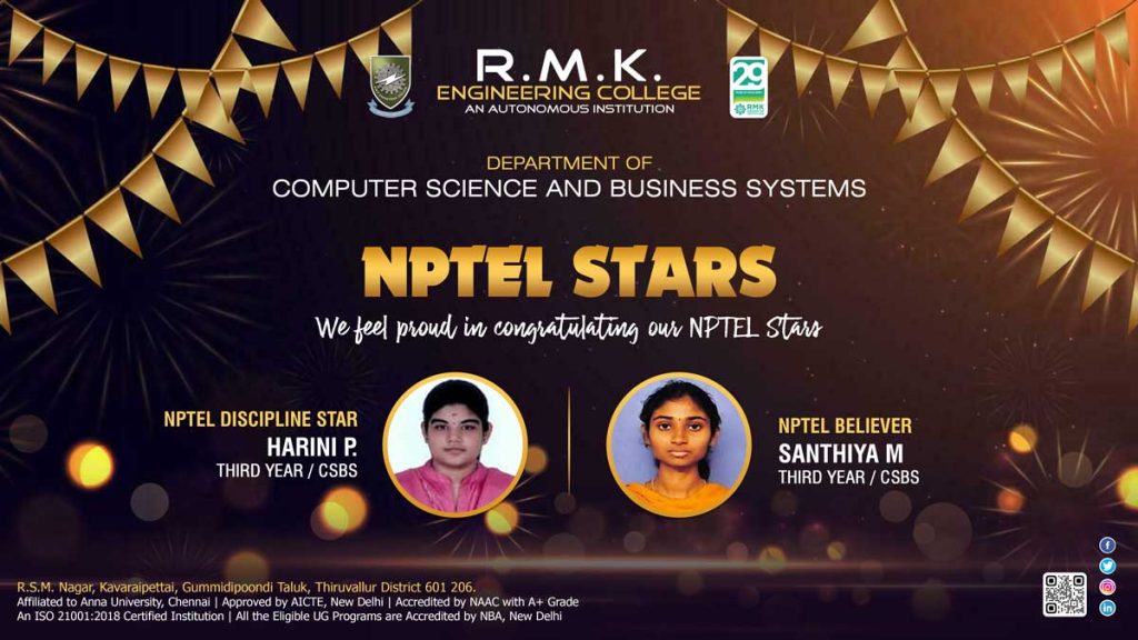 Ms. P. Harini (III Year, CSBS) has been honored with the prestigious NPTEL Motivational Learner Award!