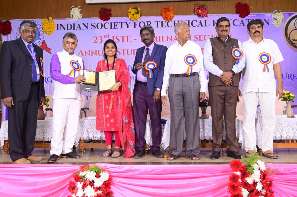 Ms. Jay Sree B L (2025 Batch) has been awarded the prestigious “Best Student Award” at the esteemed ISTE (Indian Society for Technical Education) event held in Hosur! 🎉