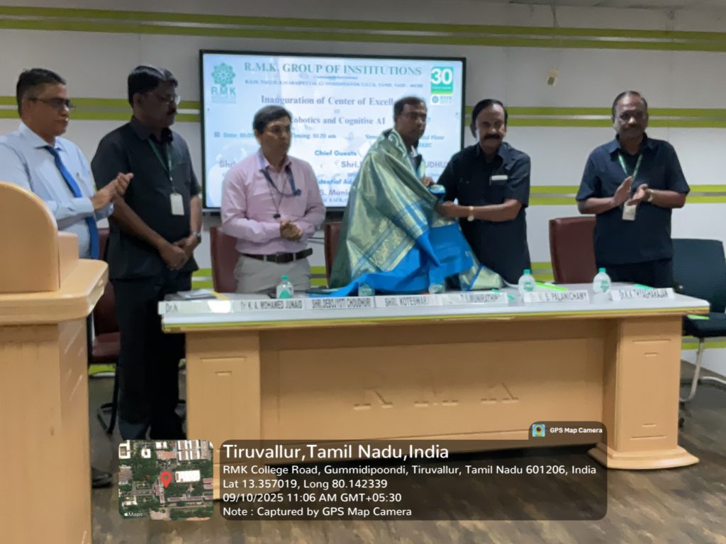 The Center of Excellence (CoE) in Robotics and Cognitive AI at R.M.K. Group of Institutions was inaugurated on 10th September 2025 at R.M.K. Engineering College, with the vision of creating a hub for next-generation robotics, artificial intelligence, and cognitive technologies.